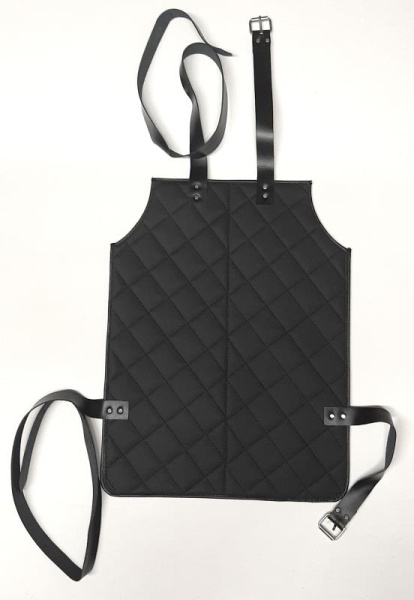Beckenschürze, Leder schwarz, wattiert, abgesteppt